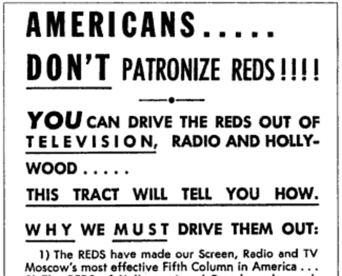 Efforts to hunt down communists infected every aspect of American life. Hollywood was famously targeted, and people in the film industry ended up on blacklists that effectively ended their careers, but the careers of people in many other industries were also destroyed.